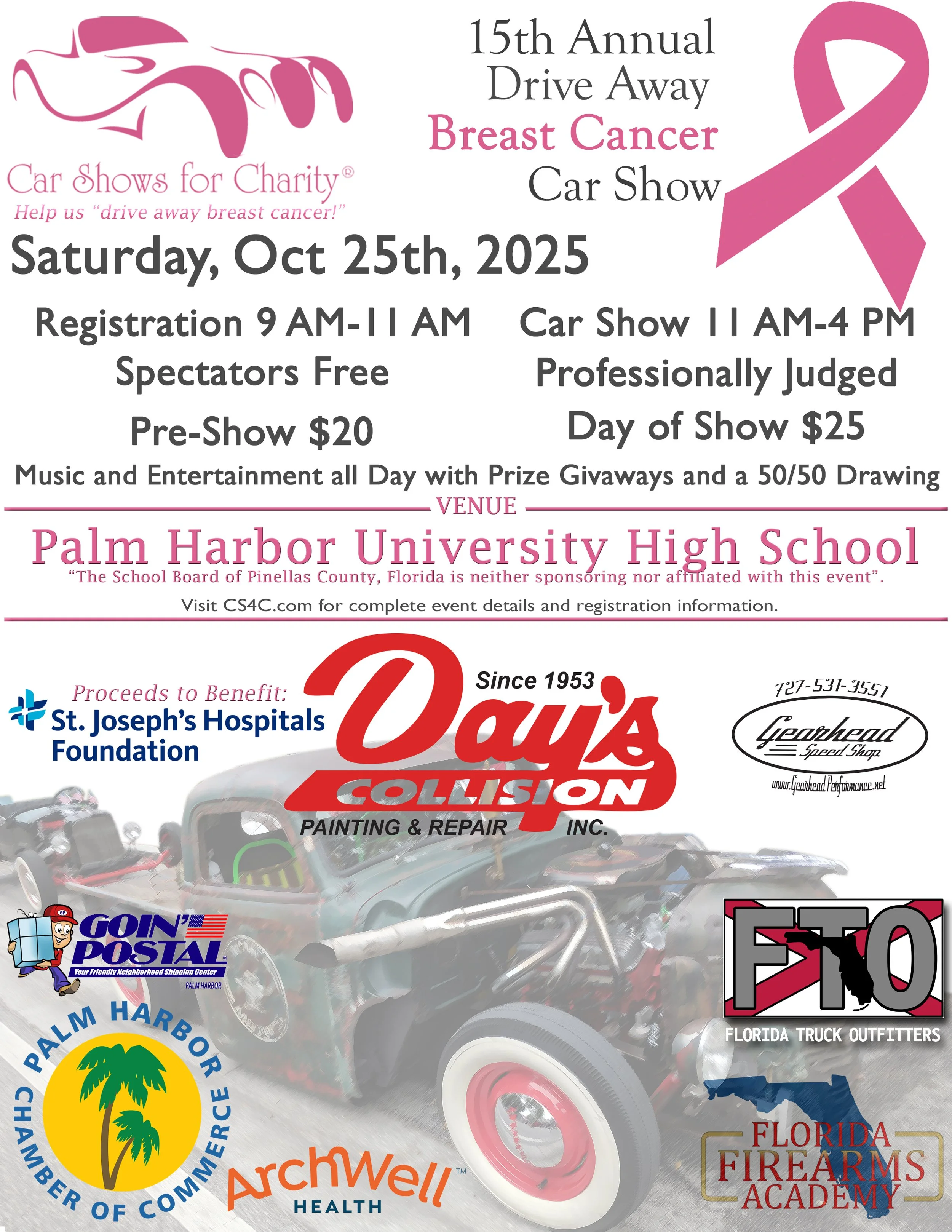 Categories: Select a Category Upcoming Register Here Upcoming | 15th Annual Drive Away Breast Cancer Car Show Registration $20.00 Sponsorship Opportunities Current Sponsors